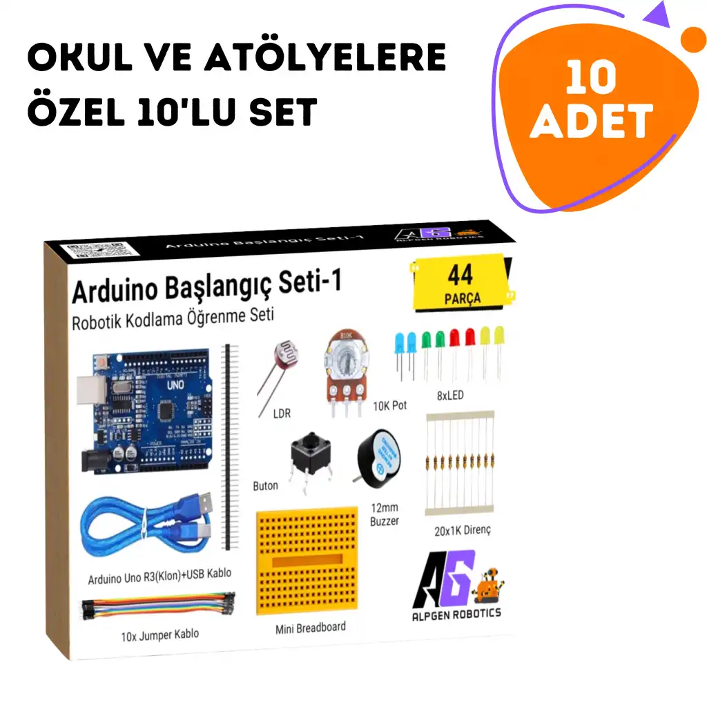 10 Adet 44 Parça Arduino Uno Robotik Kodlama Başlangıç Seti-1 – Arduino ile Maker Olma Yolunda İlk Adım!