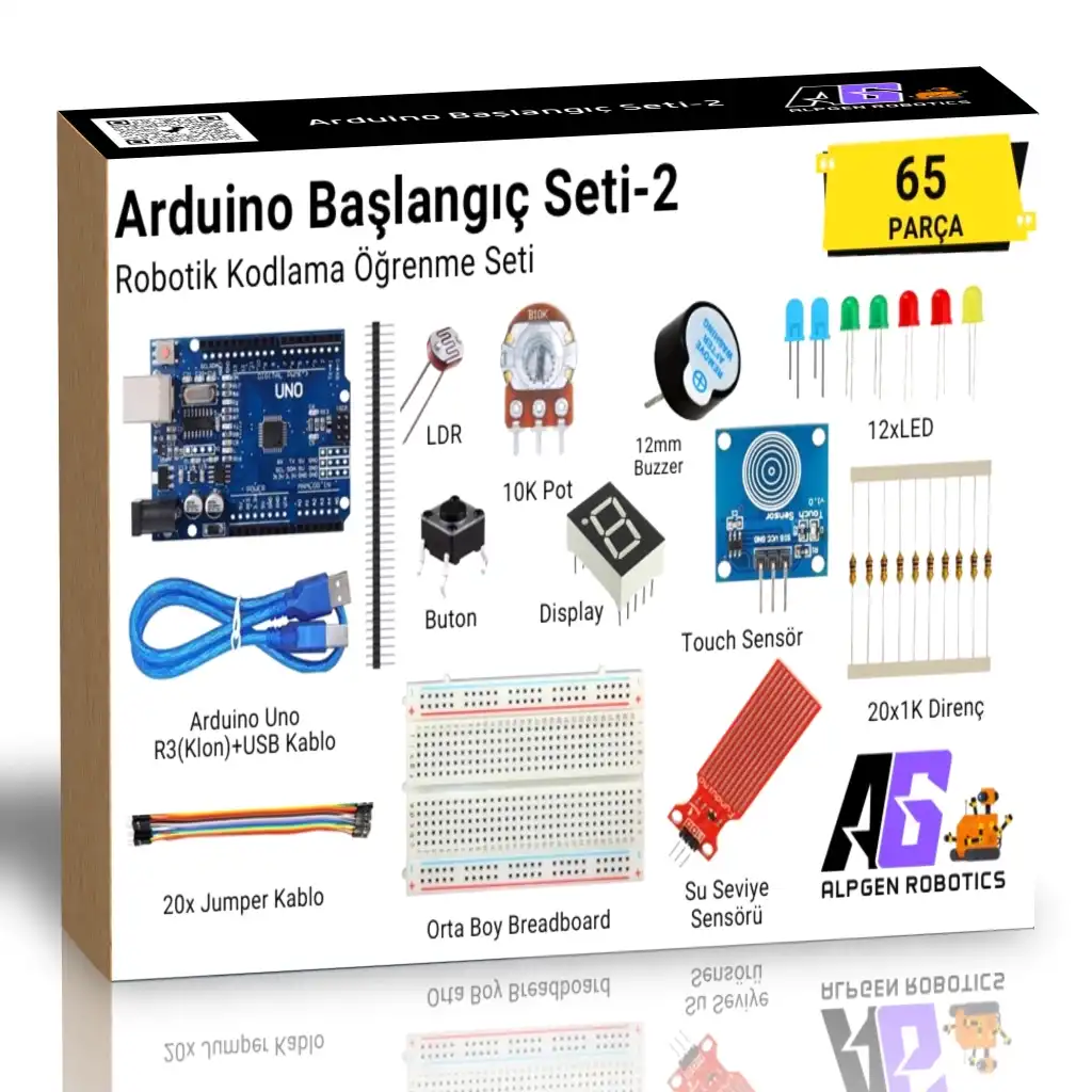 ALPGEN Robotics olarak, robotik ve kodlama dünyasına adım atmak isteyenler için kapsamlı bir Robotik Kodlama Başlangıç Seti hazırladık! Bu set, Arduino ile projeler geliştirmek isteyen herkes için ihtiyaç duyulan temel ve ileri düzey bileşenleri bir araya getiriyor. İster hobi amaçlı, ister eğitim amaçlı kullanın, bu set sizi maker olma yolunda destekleyecek!