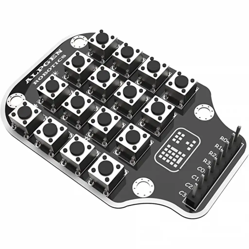 /* ALPGEN Robotics */// Keypad Modülü Kullanımı// 05.08.2021 // Soru ve Yardım İçin: proje@alpgenrobotics.com// www.alpgenrobotics.com *//#include<Keypad.h>// Keypad kütüphanesi tanımlandıconstbytesatir=4;//Keypad modülümüzün satır ve sütun sayısının tanımlanmasıconstbytesutun=4;chartus_takimi[satir][sutun]={//Keypad modülümüzün tuşlarının tanımlanması {'1','2','3','A'}, {'4','5','6','B'}, {'7','8','9','C'}, {'*','0','#','D'}};bytesatir_pinleri[satir]={9,8,7,6};//Keypad modülümüzün pinlerinin tanımlanmasıbytesutun_pinleri[sutun]={5,4,3,2};Keypadtuslar=Keypad(makeKeymap(tus_takimi),satir_pinleri,sutun_pinleri,satir,sutun);//Keypaddin tuşlarının sınıflandırılmasıvoidsetup()// Başlangıç Ayarlamaları{ Serial.begin(9600); // Seri haberleşme hızı 9600 Baudrate ayarlandı}voidloop()// Sürekli Tekrar Edecek Olan Döngü { chartus=tuslar.getKey();//Keypad tuşlarının değişkene atanması if(tus!=NO_KEY)//Eğer tuşa basıldıysa { Serial.println(tus);// Seri monitöre tuşu yaz } }