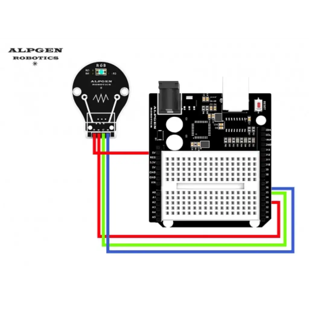 elde edilmesini sağlar. Modül üzerinde 3 renkli 5mm RGB LED bulunmaktadır. Ayrıca her rengin renk kodu bulunmaktadır, istenilen rengin renk kodunu kullanarak da LEDin istenilen renkte yanması sağlanabilir. RGB LED modülü, PWM pinleri ile kullanılır.
